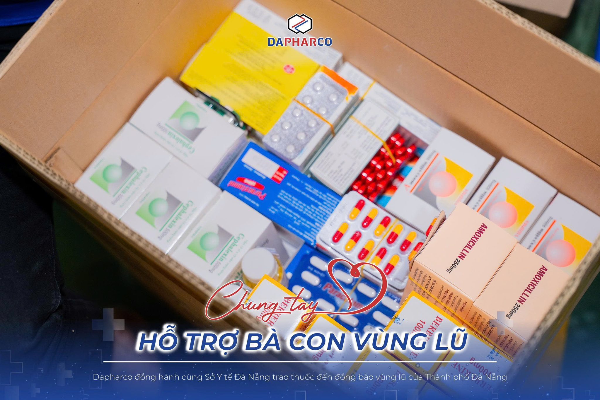 Dưới sự phối hợp chặt chẽ cùng Sở Y Tế Đà Nẵng, Dapharco đã nhanh chóng hoàn tất công tác chuẩn bị và bàn giao hàng trăm phần thuốc men, vật tư y tế “kính tặng” đồng bào vùng lũ. Đây không chỉ là sự hỗ trợ thiết thực trong giai đoạn khẩn cấp, mà còn là thông điệp lan tỏa yêu thương – rằng trong bão lũ, chúng ta luôn có nhau.