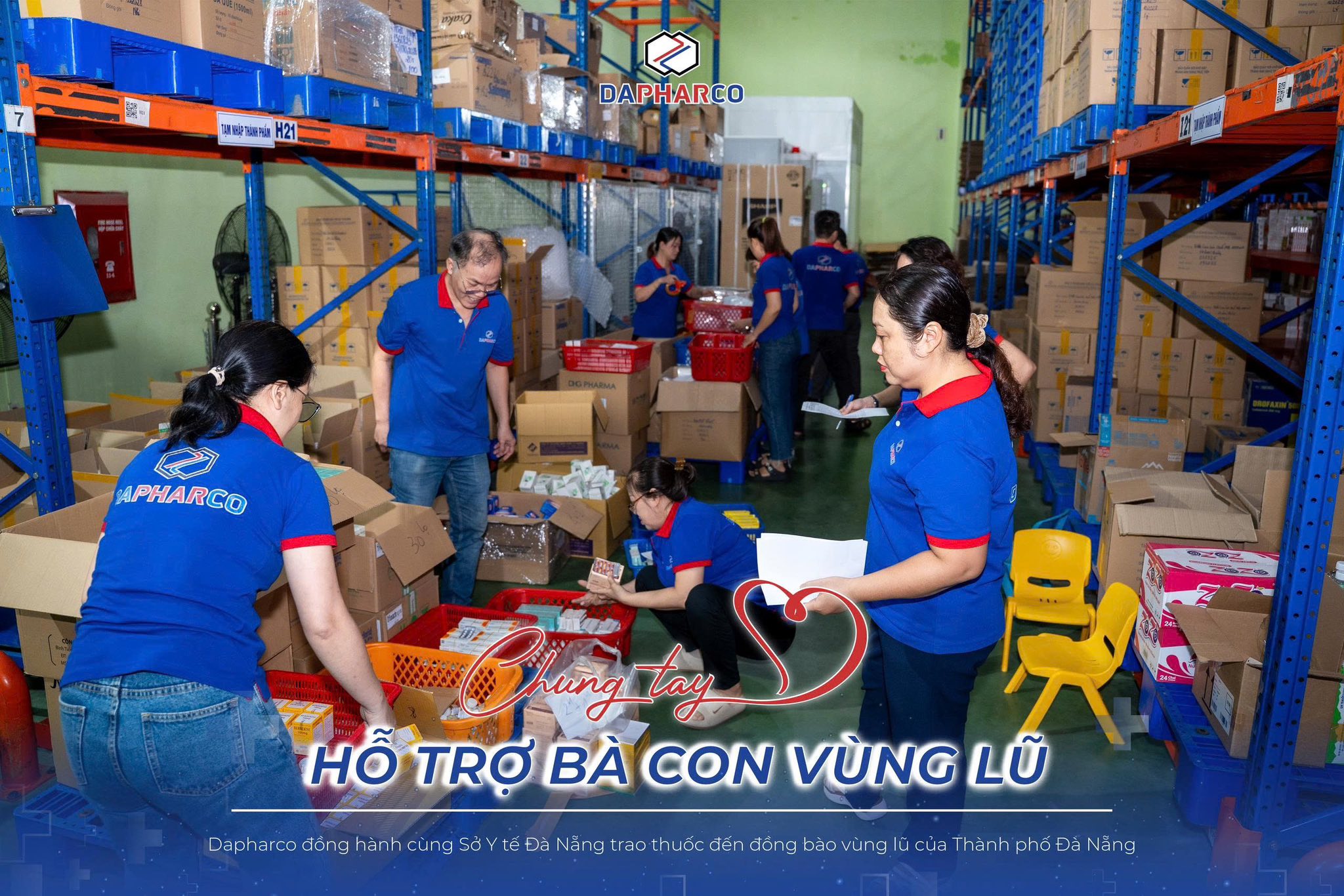 Ngay sau khi nhận được công văn từ Sở Y Tế, tập thể cán bộ nhân viên Dapharco đã khẩn trương chuẩn bị thuốc men, vật tư y tế và nhu yếu phẩm thiết yếu để gửi đến bà con vùng lũ. Mỗi thùng thuốc, mỗi phần quà đều được đóng gói cẩn thận, chứa đựng trong đó tình cảm, trách nhiệm và sự đồng hành của những người Dapharco – những người luôn đặt sức khỏe cộng đồng lên hàng đầu.