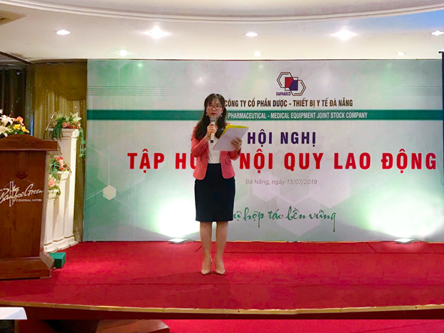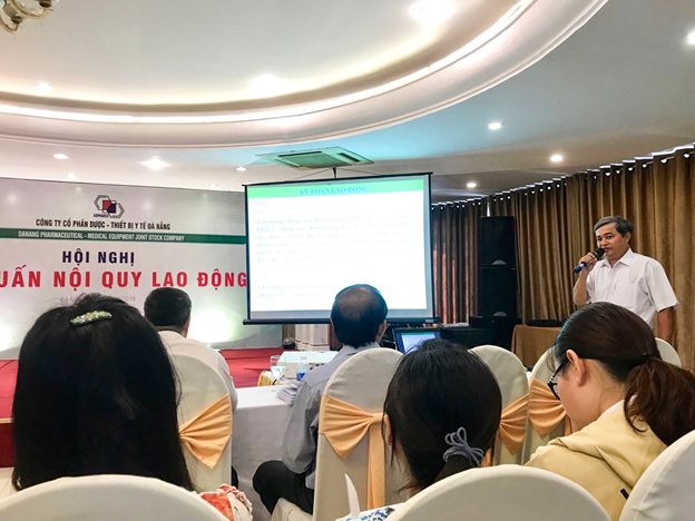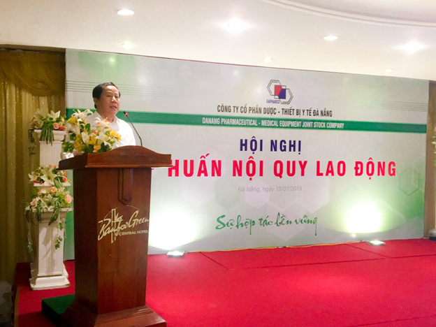 Ngày 13 tháng 07 năm 2019, tại Khách sạn Bamboo Green, Công ty Cổ phần Dược – Thiết bị y tế Đà Nẵng (Dapharco) đã tổ chức buổi tập huấn phổ biến “Nội quy lao động Công ty năm 2019” cho lãnh đạo, cán bộ, công nhân viên trong Công ty.