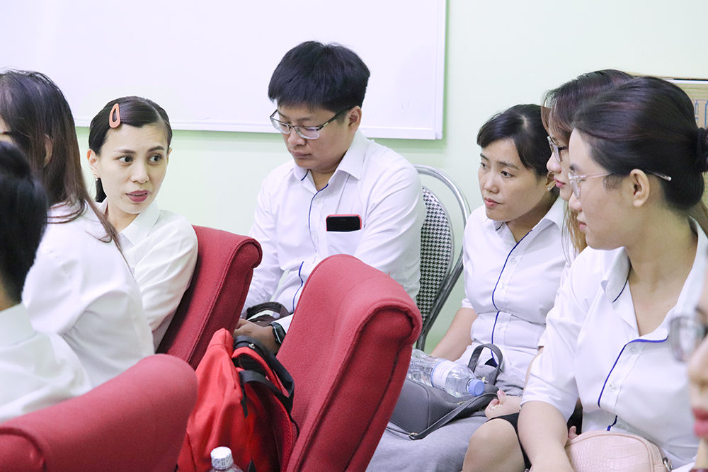 Hình ảnh các học viên đang thảo luận sôi nổi về nội dung buổi đào tạo