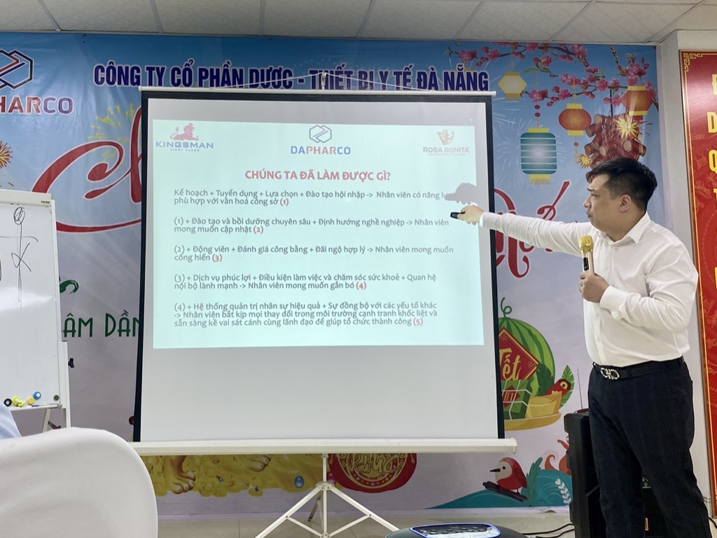 Ngày 07/06/2022 vừa qua, Công ty Cổ phần Dược – Thiết bị y tế Đà Nẵng ( Dapharco) đã tổ chức khóa đào tạo “Kỹ năng tạo động lực” cho các quản lý, nhân viên tài năng của công ty tại Phòng Đào tạo – Công ty Dapharco với sự giảng dạy nhiệt tình của giảng viên Tiến sĩ Hoàng Trung Dũng – Thành viên HĐQT công ty.