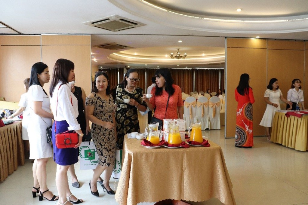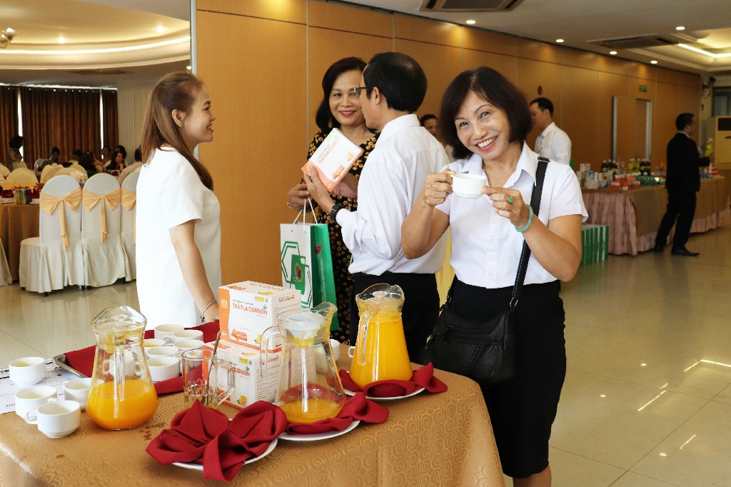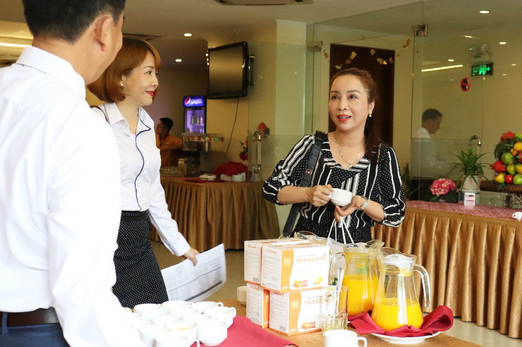 Các Dược sĩ đến tham dự hội nghị thưởng thức sản phẩm mới – Trà nghệ chống lão hóa Flacurmin của công ty dược Baniphar