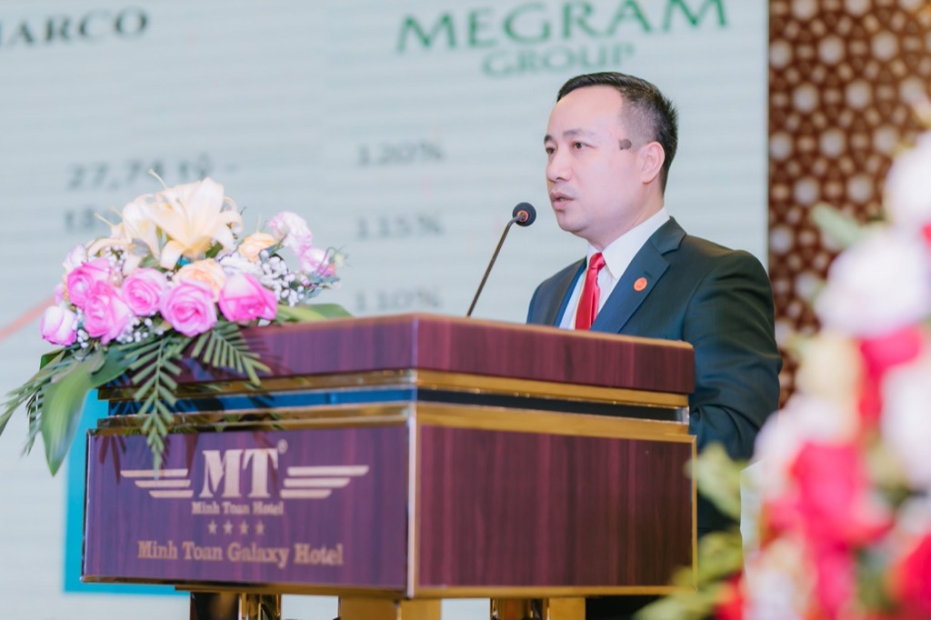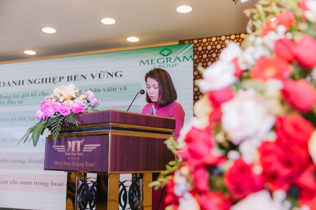 Bà Đinh Thị Mộng Vân – Phó TGĐ tập đoàn Megram thay mặt Chủ tịch Hội Đồng Quản Trị truyền đạt thông điệp kinh doanh năm 2022