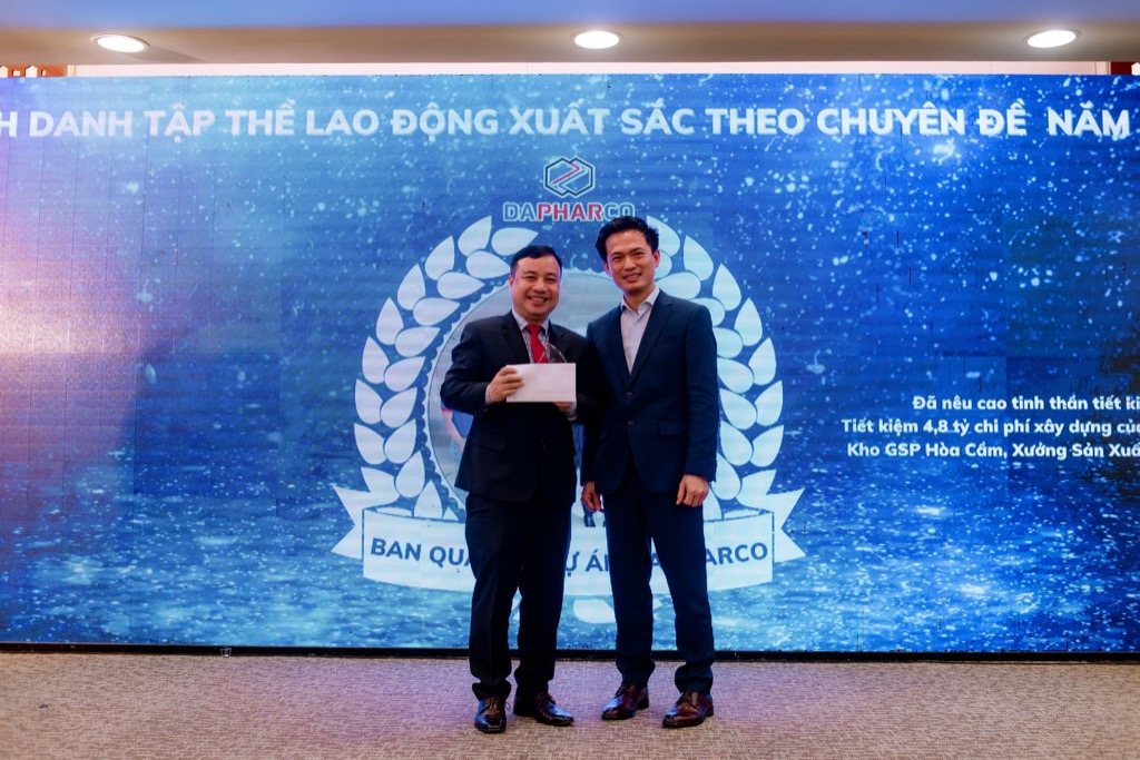 Ông Đỗ Thành Trung – Đại diện Hội Đồng Quản Trị khen thưởng Ban Quản Lý Dự Án Dapharco đã có thành tích xuất sắc trong năm 2022