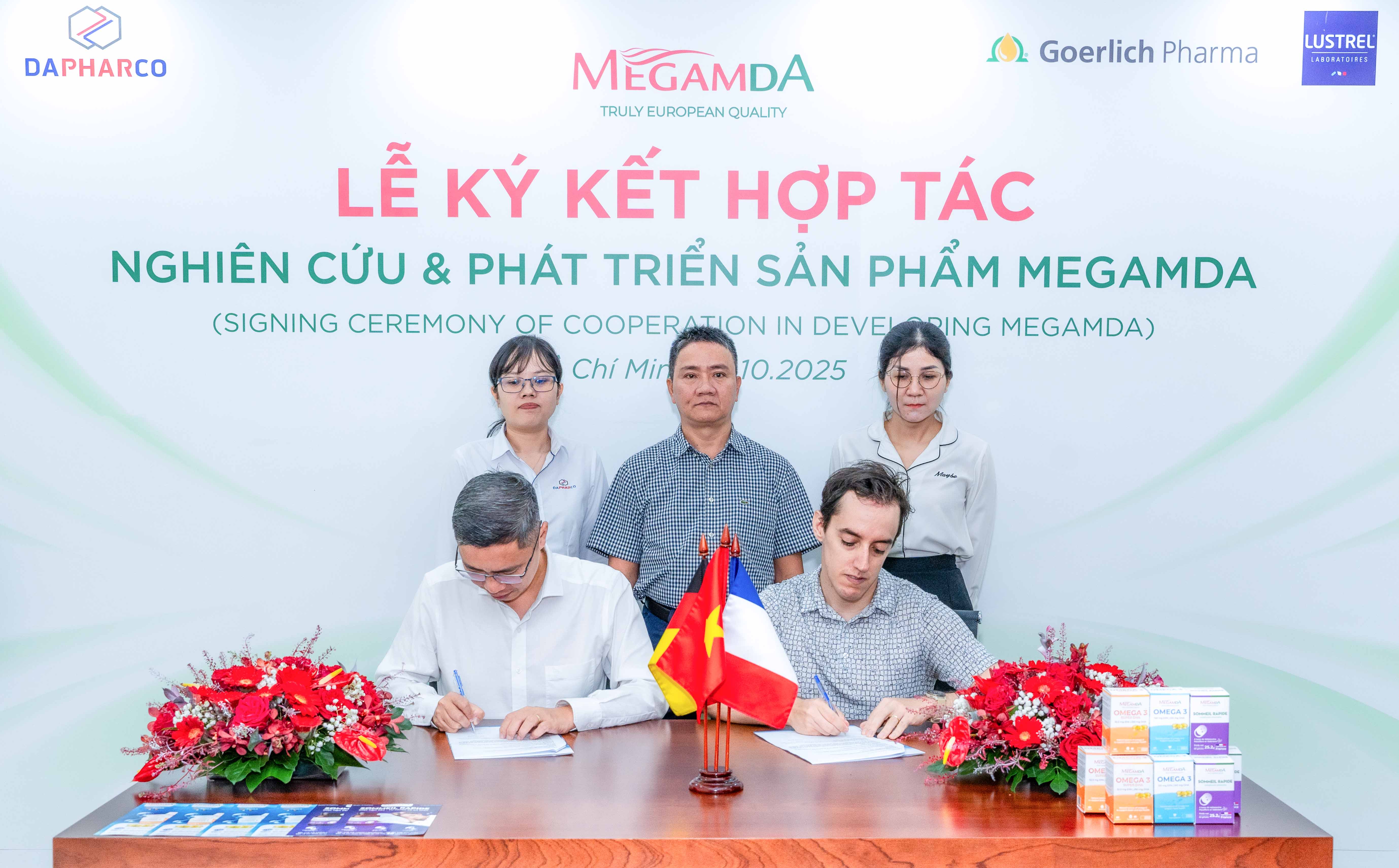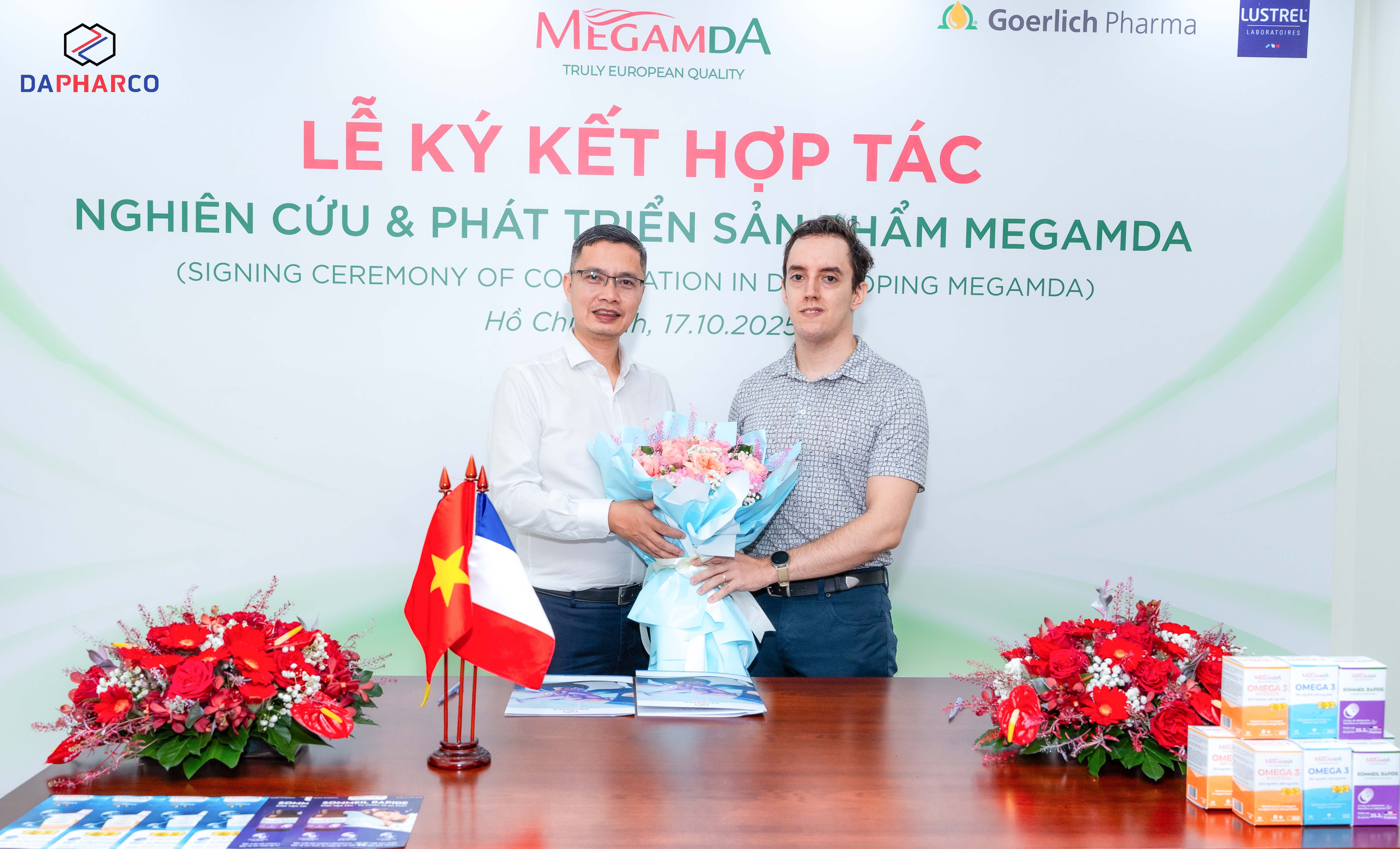 Ngày 17/10/2025, Công ty Cổ phần Dược – Thiết bị y tế Đà Nẵng (Dapharco) đã chính thức ký kết hợp tác nghiên cứu & phát triển các dòng sản phẩm thực phẩm bảo vệ sức khỏe mang thương hiệu Megamda với hai tập đoàn dược phẩm hàng đầu Châu Âu – Goerlich Pharma (Đức) và Lustrel Laboratoires (Pháp).