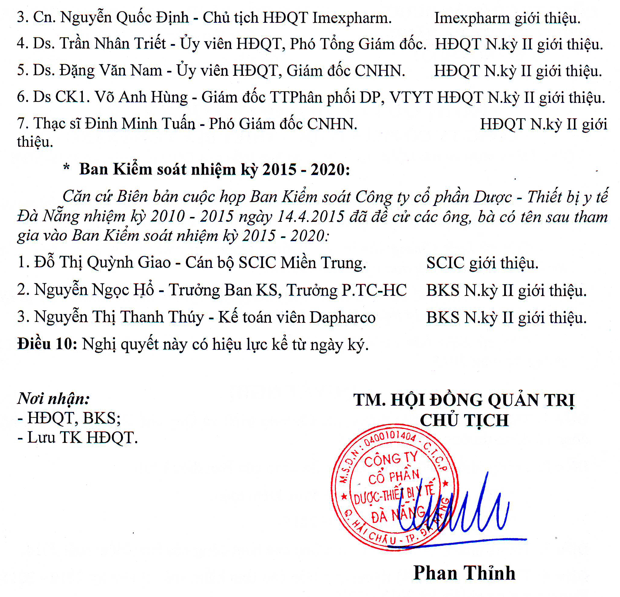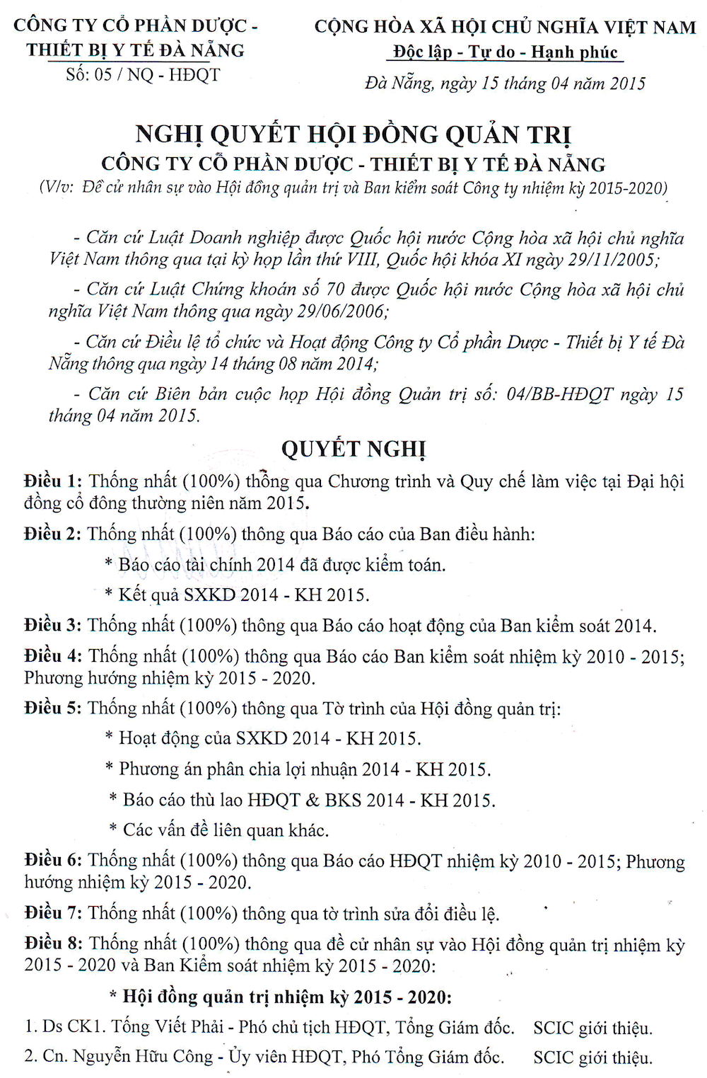 Nghị quyết hội đồng quản trị Về việc Đề cử nhân sự vào Hội đồng quản trị và Ban kiểm soát nhiệm kỳ 2015-2020