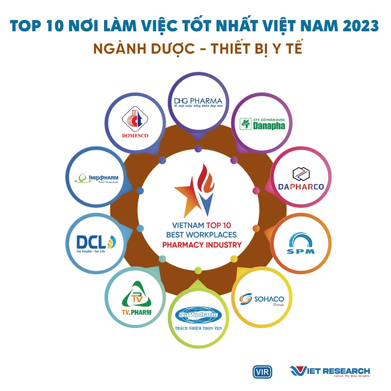 Vừa qua, Trong khuôn khổ Chương trình Nghiên cứu toàn quốc về Nơi làm việc tốt nhất Việt Nam năm 2023, (Top 10 Best WorkPlaces), Viet Research phối hợp với Báo Đầu tư công bố Top 10 Nơi làm việc tốt nhất trong ngành Dược Phẩm – Thiết bị Y tế. Top 10 bao gồm những doanh nghiệp có thành tích xuất sắc nhất về môi trường làm việc, chính sách đãi ngộ người lao động, kết quả kinh doanh ổn định và bền vững