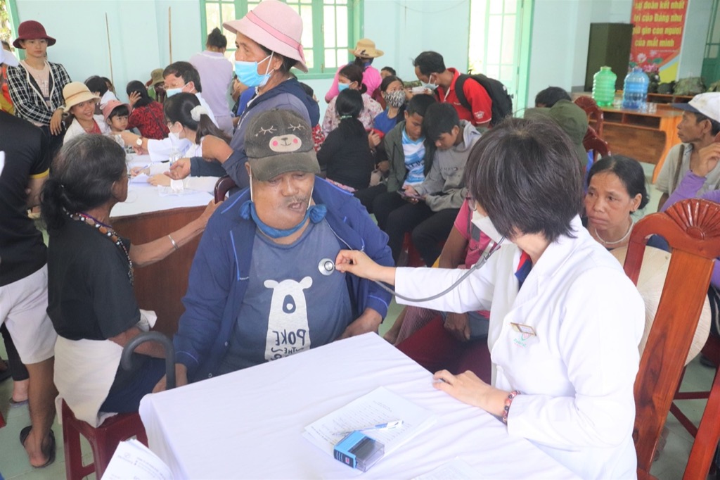 Tại đây, đoàn đã tổ chức khám bệnh, cấp phát thuốc miễn phí, trao quà hỗ trợ khó khăn; đồng thời hướng dẫn kiến thức và kỹ năng phòng ngừa bệnh tật cho hơn 350 lượt bà con nhân dân xã Tà Pơơ và tặng 100 suất quà cho những hộ gia đình có hoàn cảnh khó khăn, với tổng trị giá hơn 150 triệu đồng.