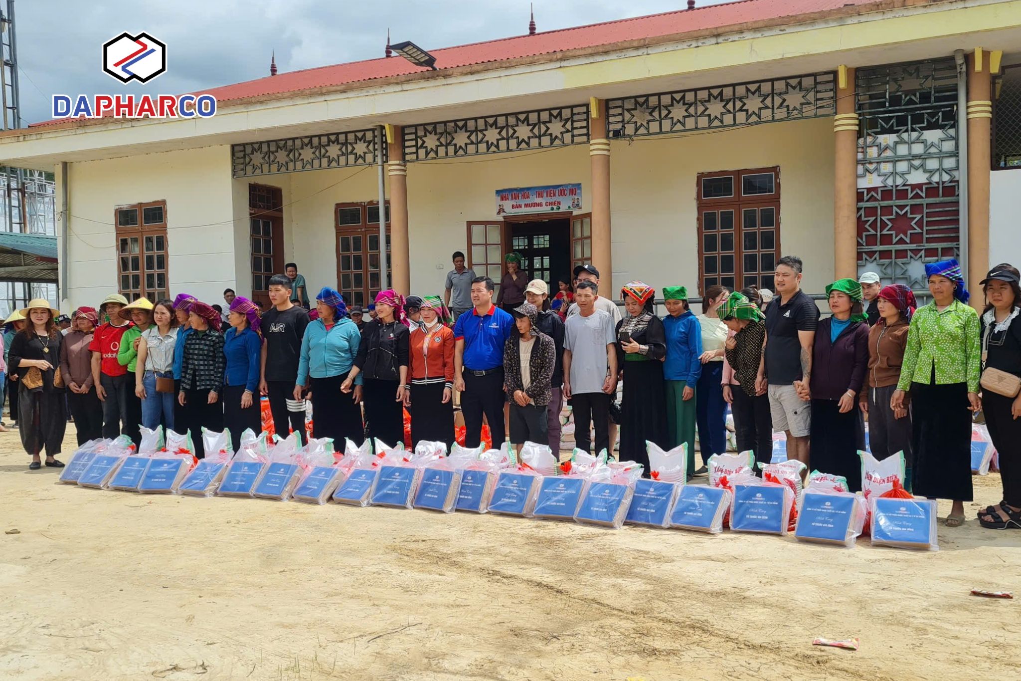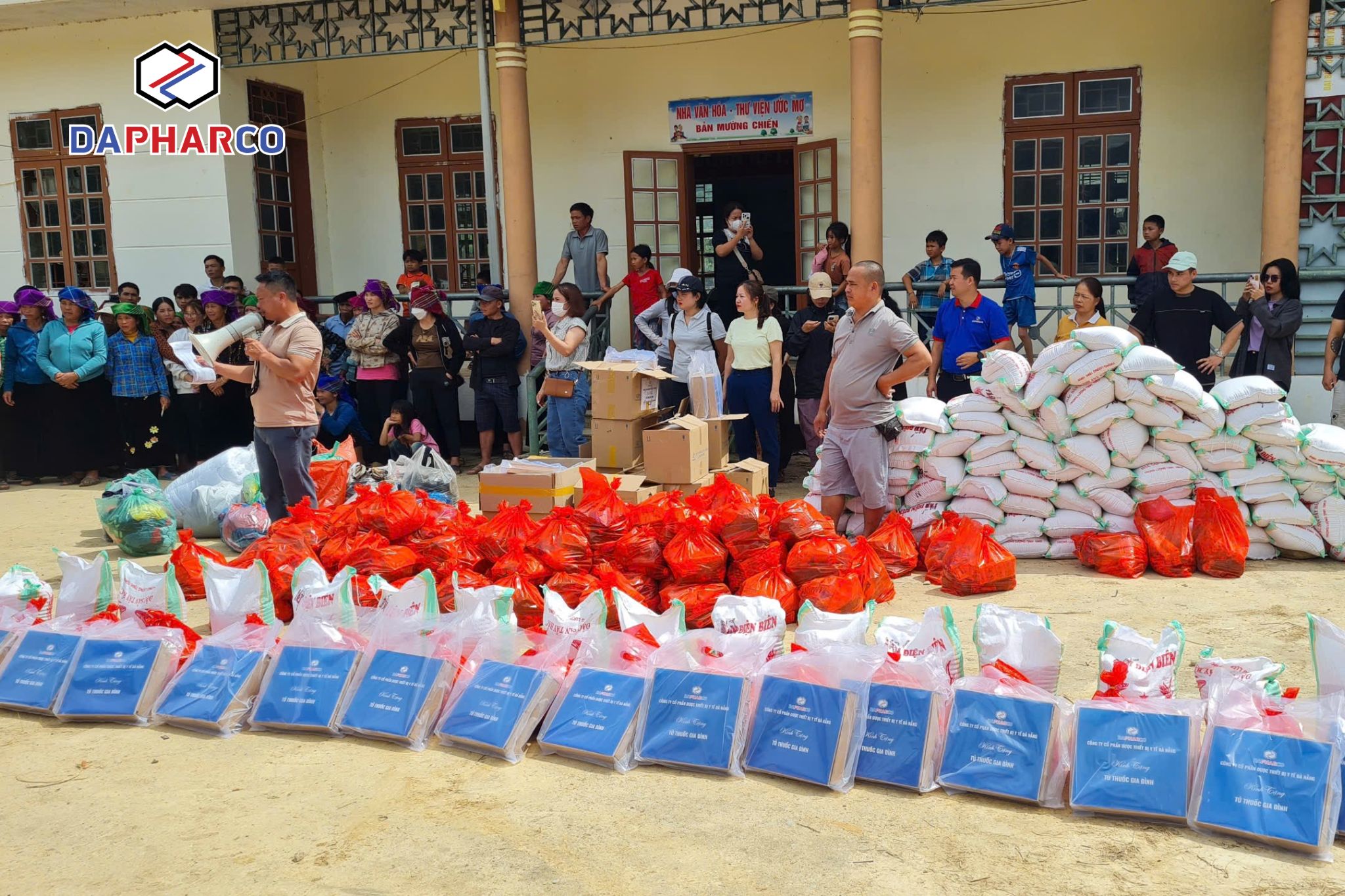 Sáng 28/9, đoàn từ thiện Dapharco phối hợp cùng Nhóm từ thiện Món quà yêu thương đã đến thăm và tặng quà cho những hộ gia đình chịu thiệt hại nặng nề trong đợt lũ quét vừa qua tại xã Ngọc Chiến, huyện Mường La, tỉnh Sơn La. Đoàn đã trao tặng mỗi suất quà trị giá 1.000.000 đồng, gồm tủ thuốc gia đình, cẩm nang phòng chống dịch bệnh mùa mưa lũ, gạo, sữa và những nhu yếu phẩm thiết yếu.