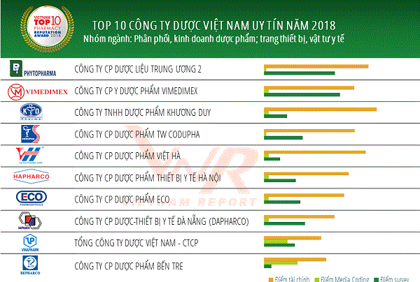 Nguồn: Vietnam Report, Top 10 Công ty dược uy tín năm 2018, tháng 12/2018