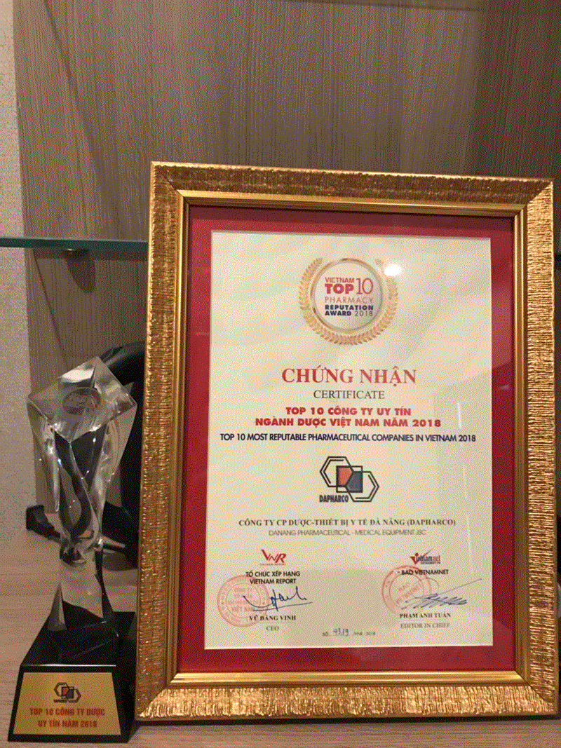 Dapharco – Cup và Giấy chứng nhận Top 10