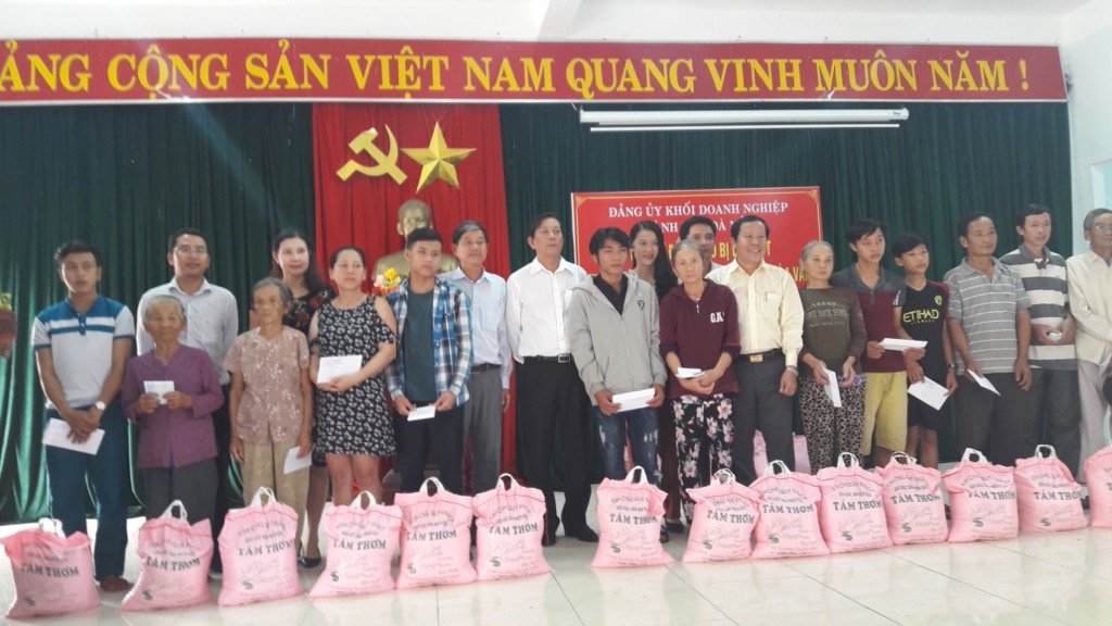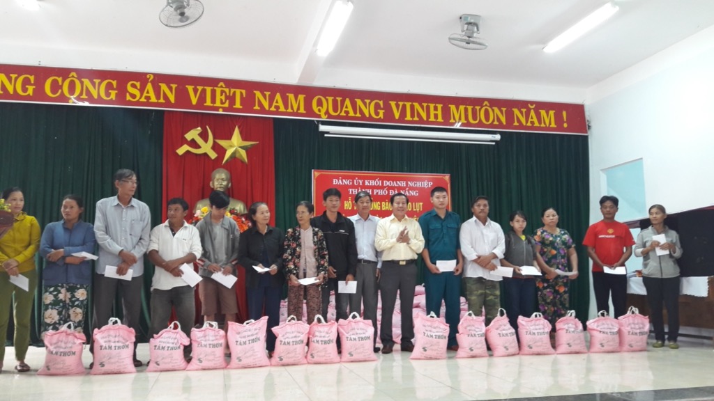 Để kịp thời có mặt tại vùng lũ lúc khó khăn nhất, ngày 16.11.2017, Tổng giám đốc Công ty cùng Ban Thường vụ Đảng ủy khối doanh nghiệp Thành phố đã tổ chức đi thăm, động viên và tặng quà cho bà con vũng lũ tại hai xã Hòa Châu và Hòa Phước với 100 suất, mỗi suất trị giá 535.000đ.