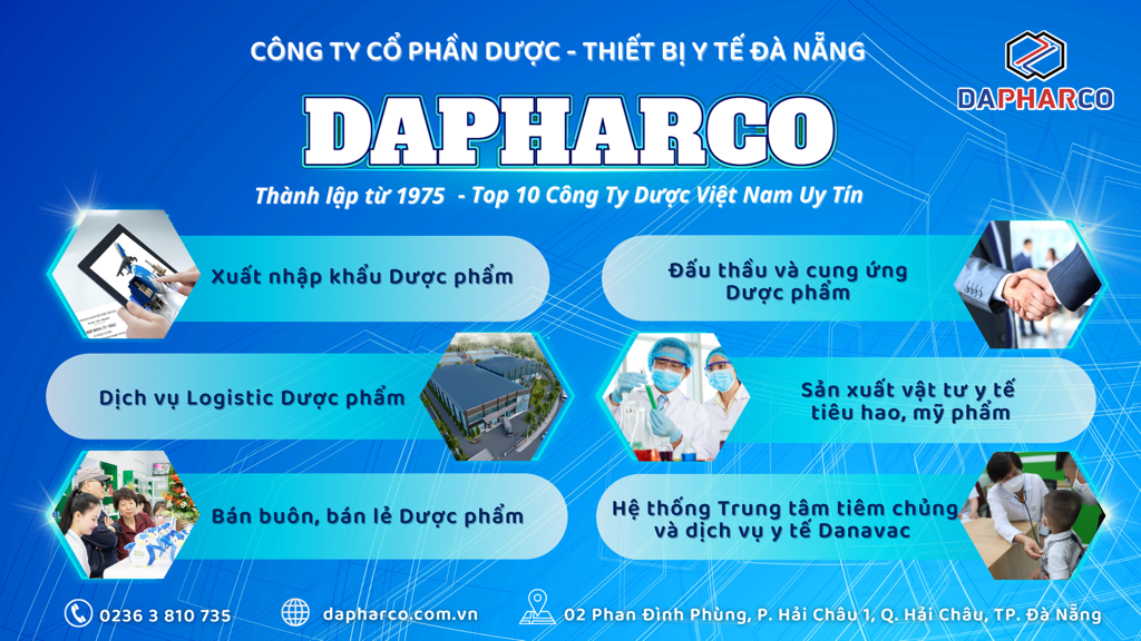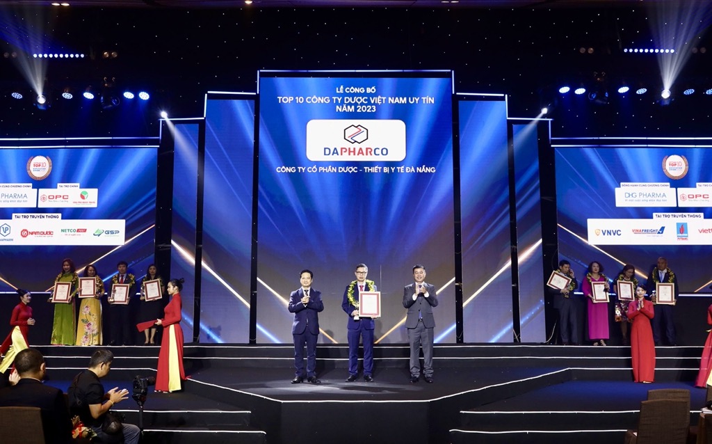Hôm nay 18/01/2024, Công ty Cổ phần Dược – Thiết bị y tế Đà Nẵng (DAPHARCO) đã vinh dự nhận giải thưởng “ Top 10 công ty Dược Việt Nam Uy tín năm 2023 – nhóm ngành: Phân phối, kinh doanh dược phẩm, trang thiết bị y tế.